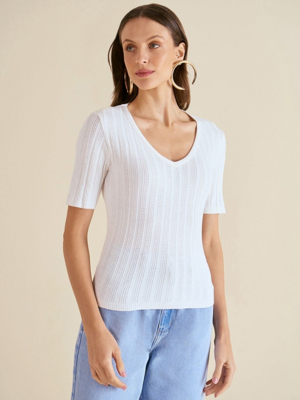 BLUSA DECOTE V MANGA CURTA TRICOT