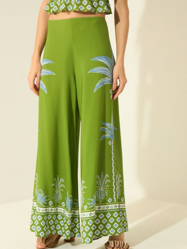 CALÇA PANTALONA DE CINTURA ALTA EM VISCOSE ESTAMPADA