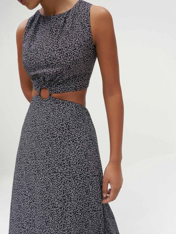 VESTIDO MIDI ESTAMPADO EM VISCOSE COM CUT OUT